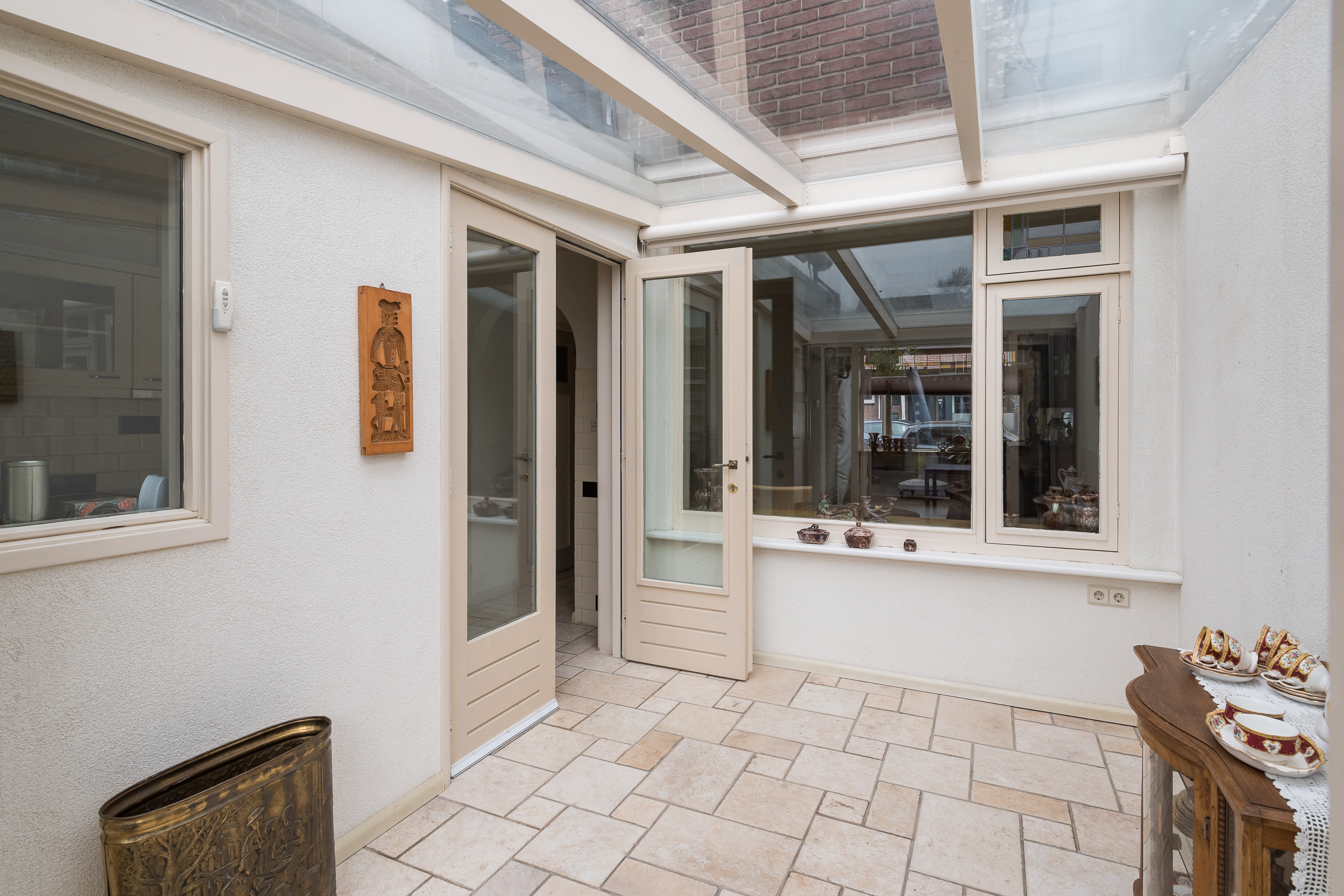 Openslaande deuren geven toegang tot de serre, welke is voorzien van dakramen, elektrisch bedienbare screens en een zonnescherm. Via de keuken bereikt u de bijkeuken met wasmachineaansluiting en de opstelplaats van de cv-combiketel.