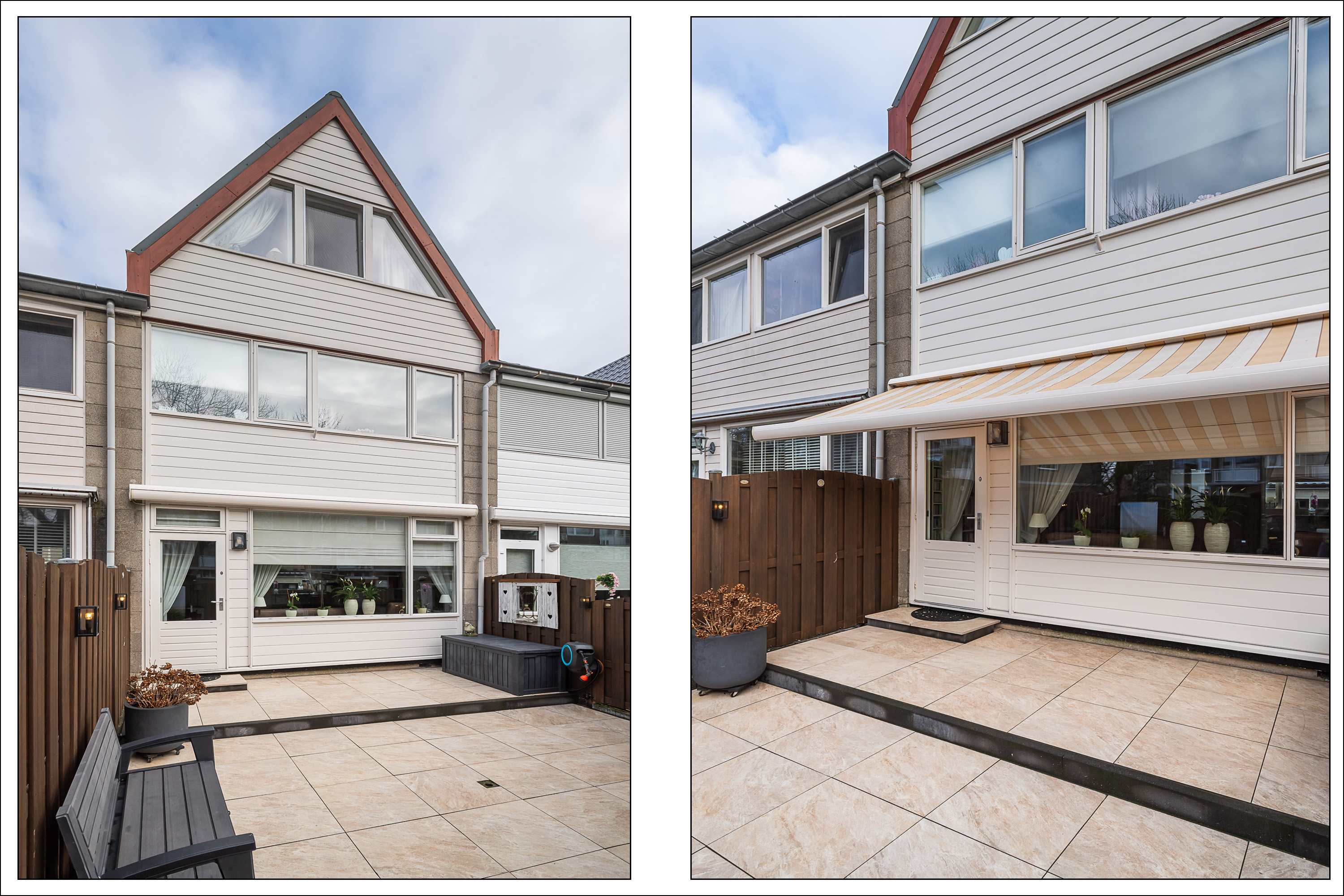 Elektrisch zonnescherm aan de achtertuinzijde.