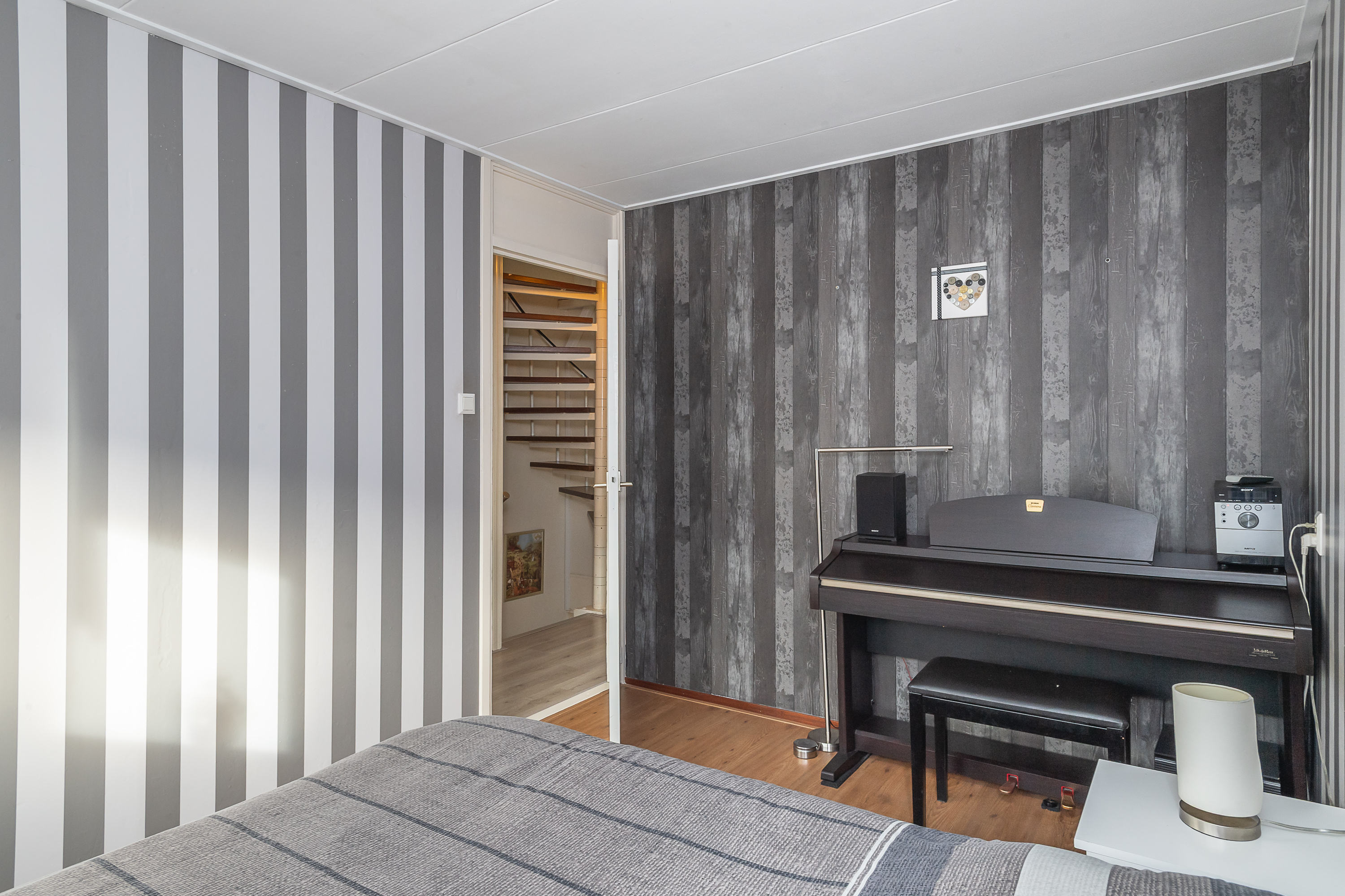 Overloop met trapopgang naar de tweede verdieping. Op deze verdieping zijn 3 slaapkamers gesitueerd waarvan 2 met vaste kast.