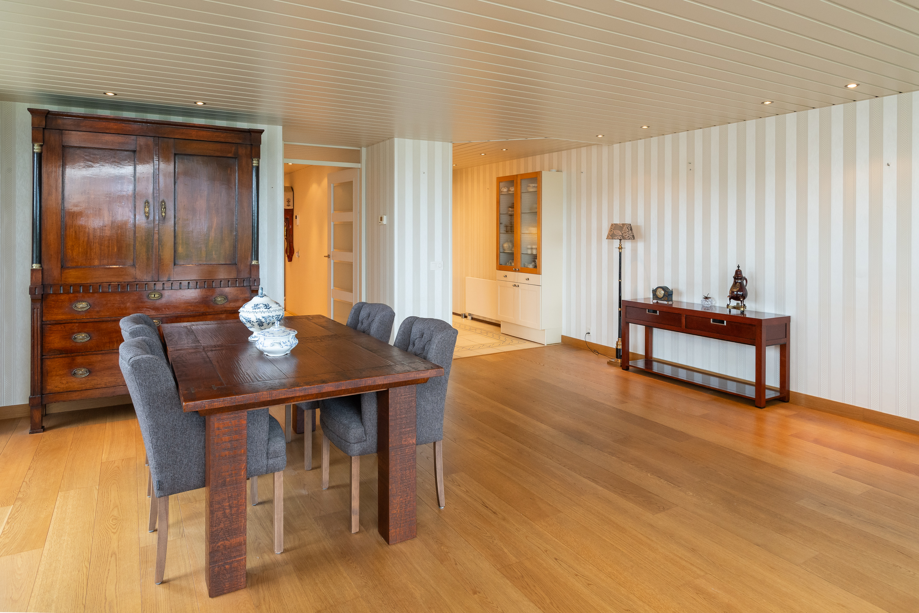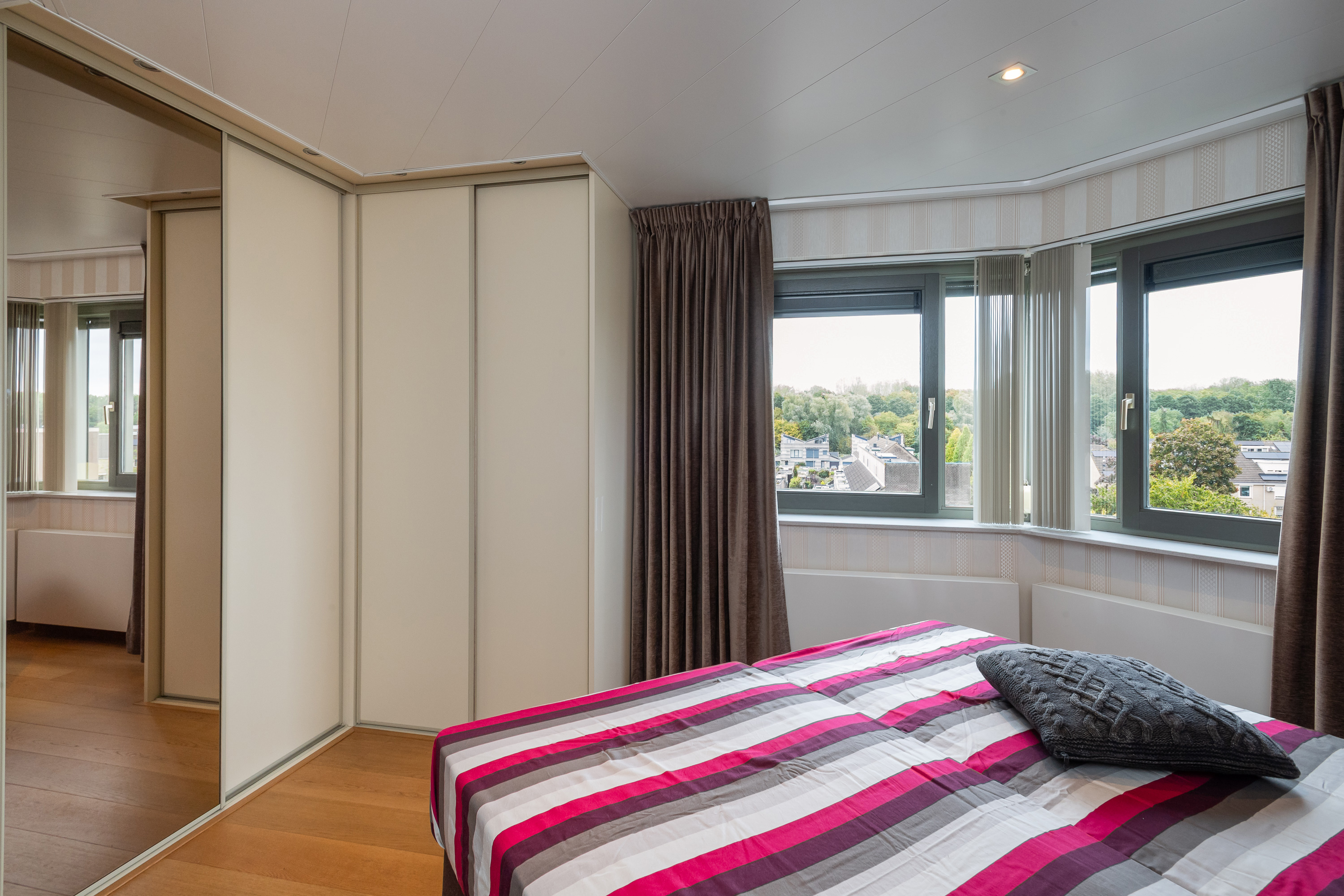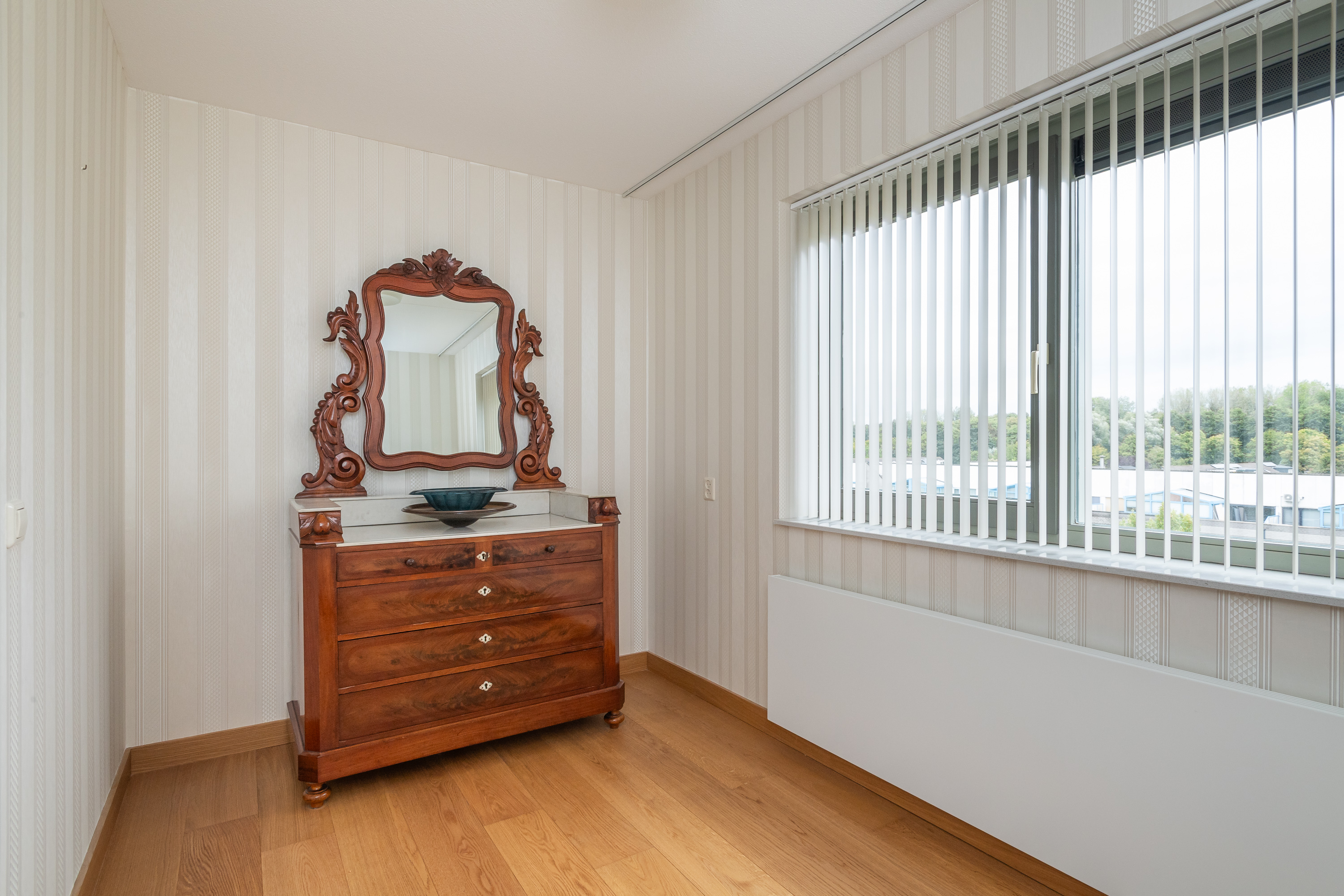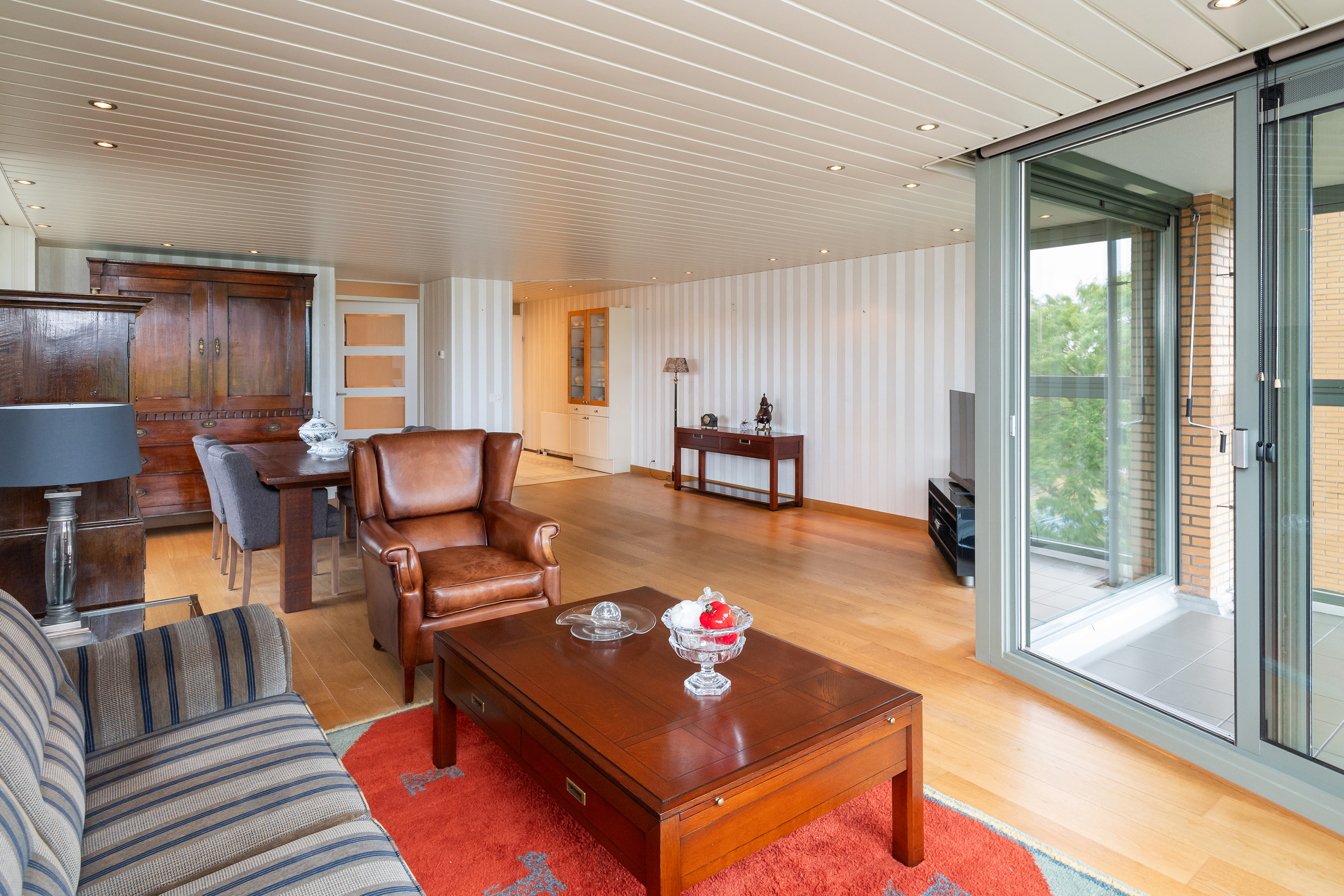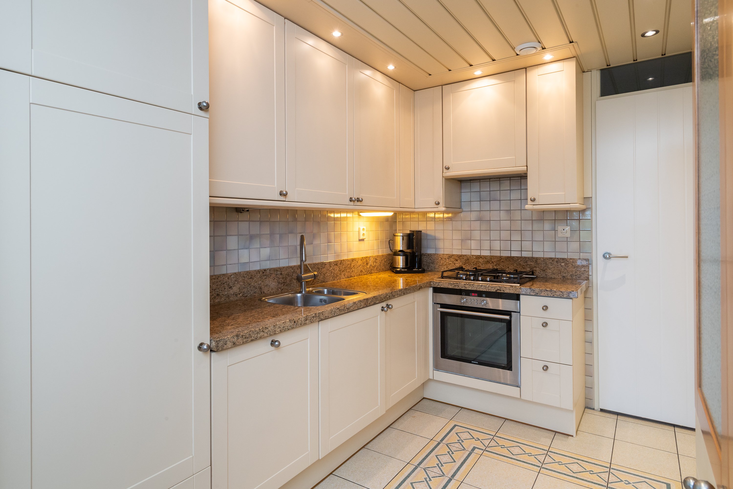 Hal met tegelvloer en toegang tot alle vertrekken. De sfeervolle woonkamer is voorzien van een parketvloer, een plafond met inbouwspots en toegang het inpandige balkon met schuifbeglazing en een screen. Zowel vanuit de woonkamer als vanaf het balkon heeft u een fantastisch vrij uitzicht! De open keuken met tegelvloer is voorzien van een hoekopstelling met een granieten blad en inbouwapparatuur waaronder een gaskookplaat met afzuigkap, oven, vaatwasser (recent vernieuwd, merk Siemens) en koelkast met vriesvak (Siemens). Via de keuken heeft u toegang tot de bijkeuken waar zich de opstelplaats van de CV-combiketel en de wasmachine aansluiting bevindt. De gang biedt verder toegang tot een ouderslaapkamer met een parketvloer en een vaste hoekkast, een 2e slaapkamer met vaste kast en bureau en een 3e slaap-/werkkamer met dito vloer. Toilet met fonteintje. Geheel betegelde badkamer met 2 wastafels met planchetten en grote spiegel, een ligbad, douchecabine, kolomkast en radiator.
