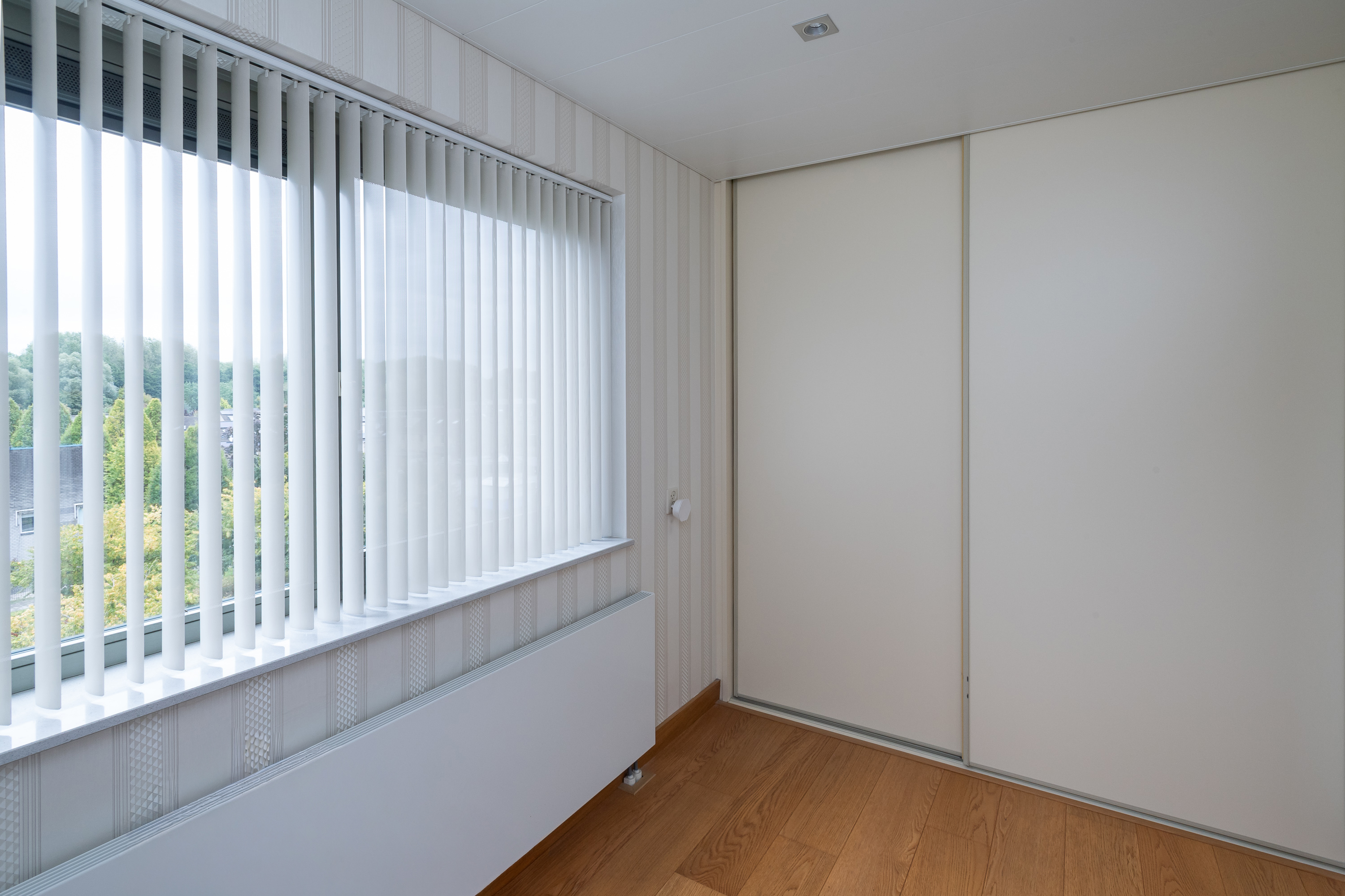 Het appartement is voorzien van screens (1 elektrisch bedienbaar en verder handmatig)