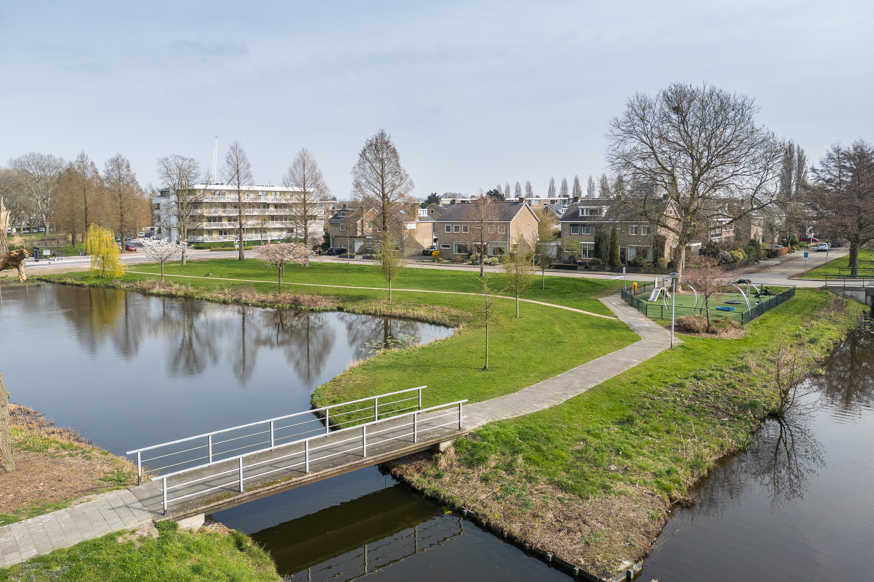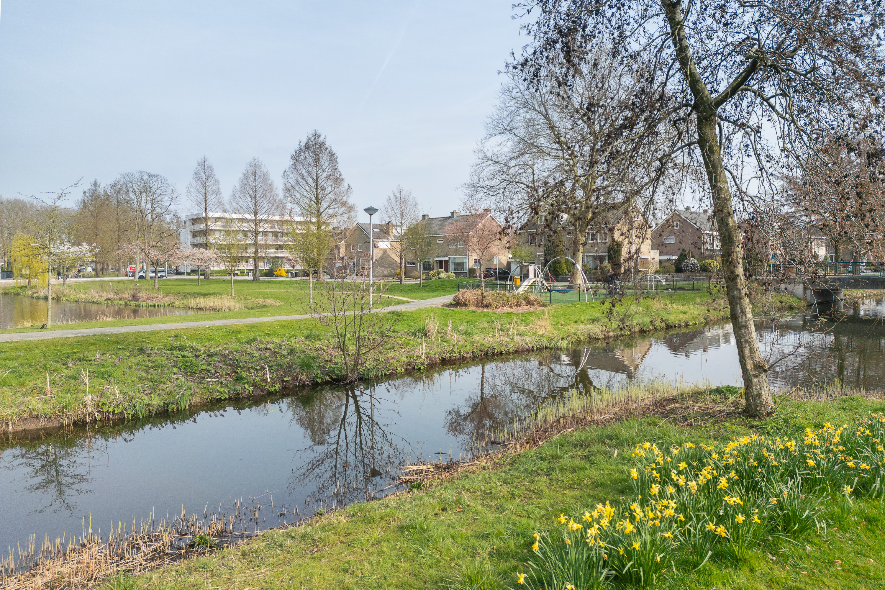 Heerlijk wonen in deze rustig gelegen 2/1-kap woning met mooi uitzicht op een groen plantsoen met grote vijver.