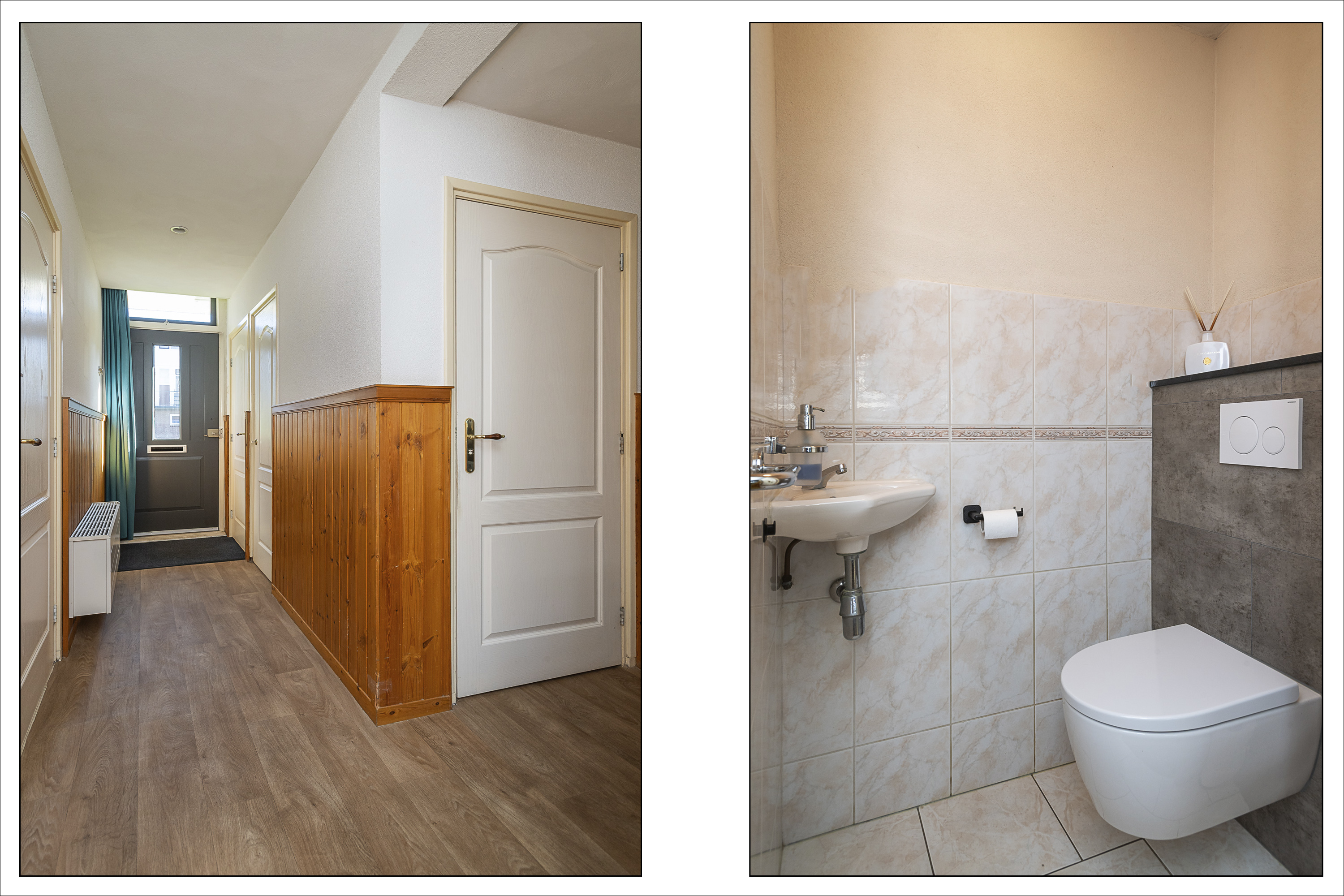 Separate toiletruime met een zwevend toilet en fonteintje.