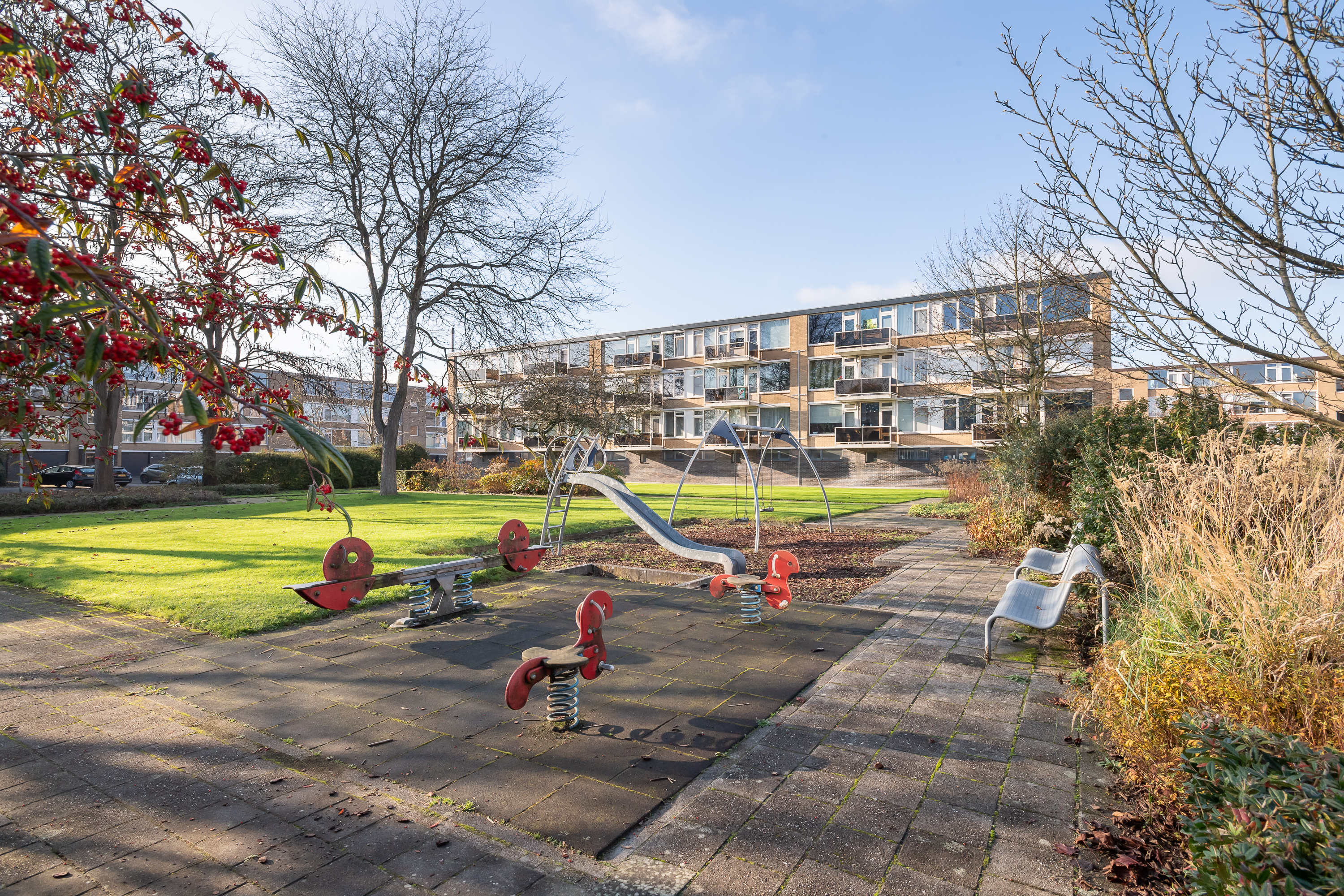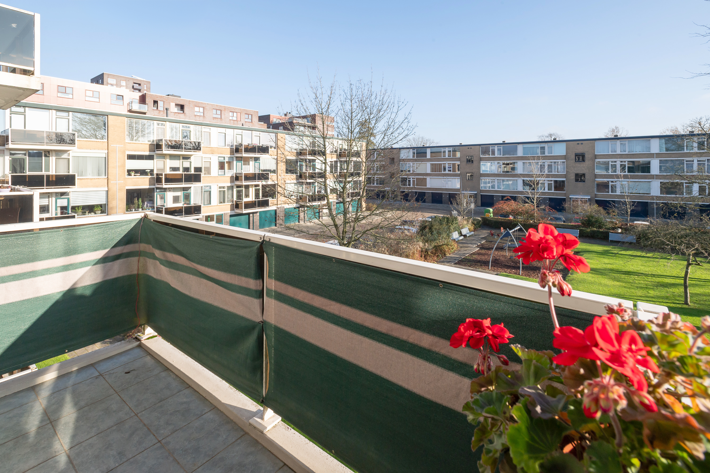Ligging met vrij uitzicht op een plantsoen.