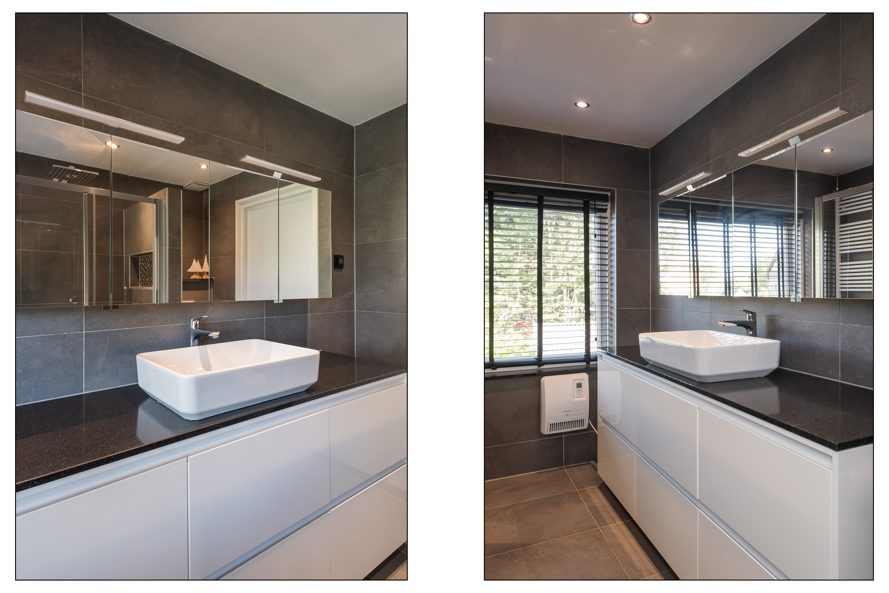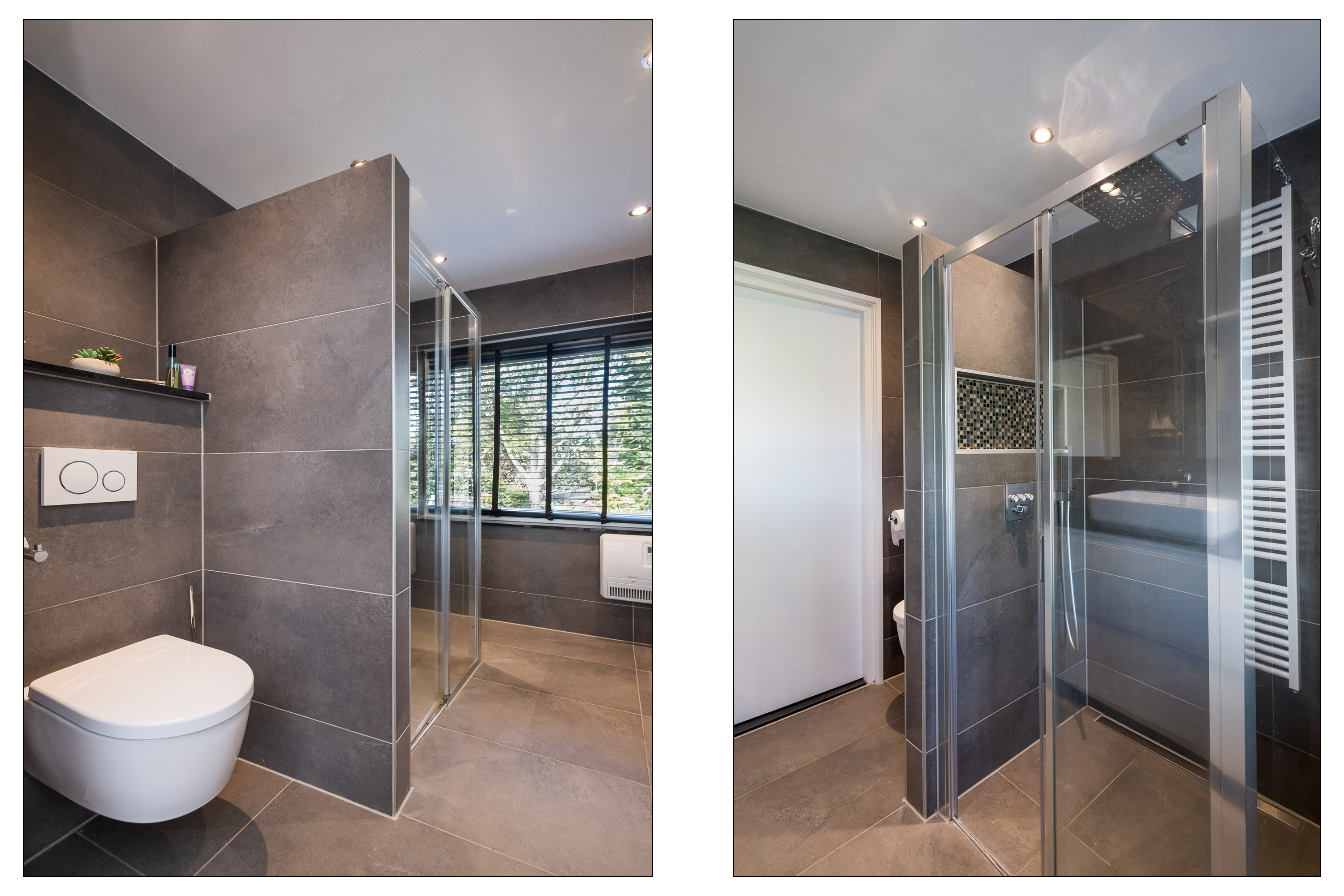 De moderne en luxe badkamer is vernieuwd in 2019 en voorzien van elektrische vloerverwarming.