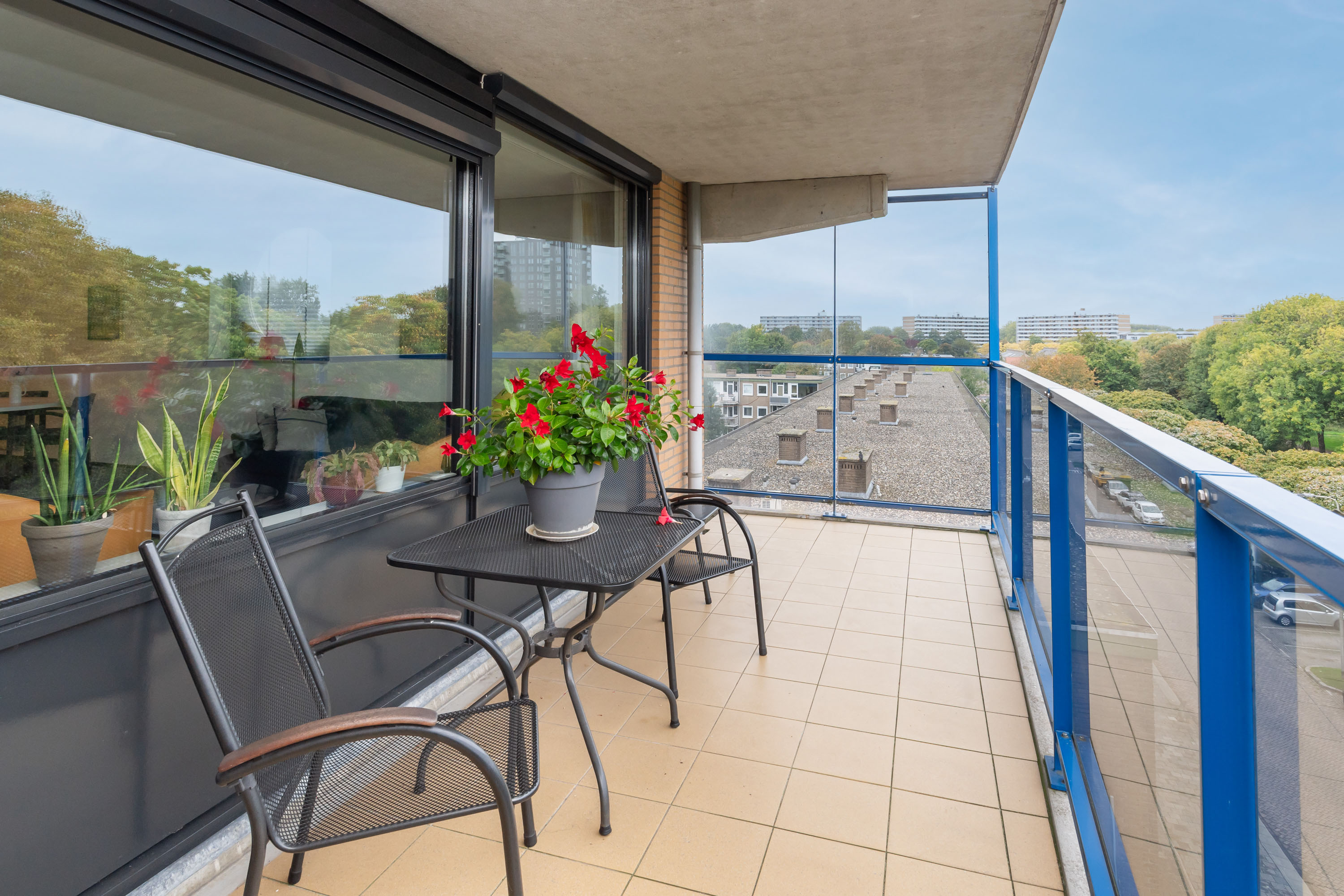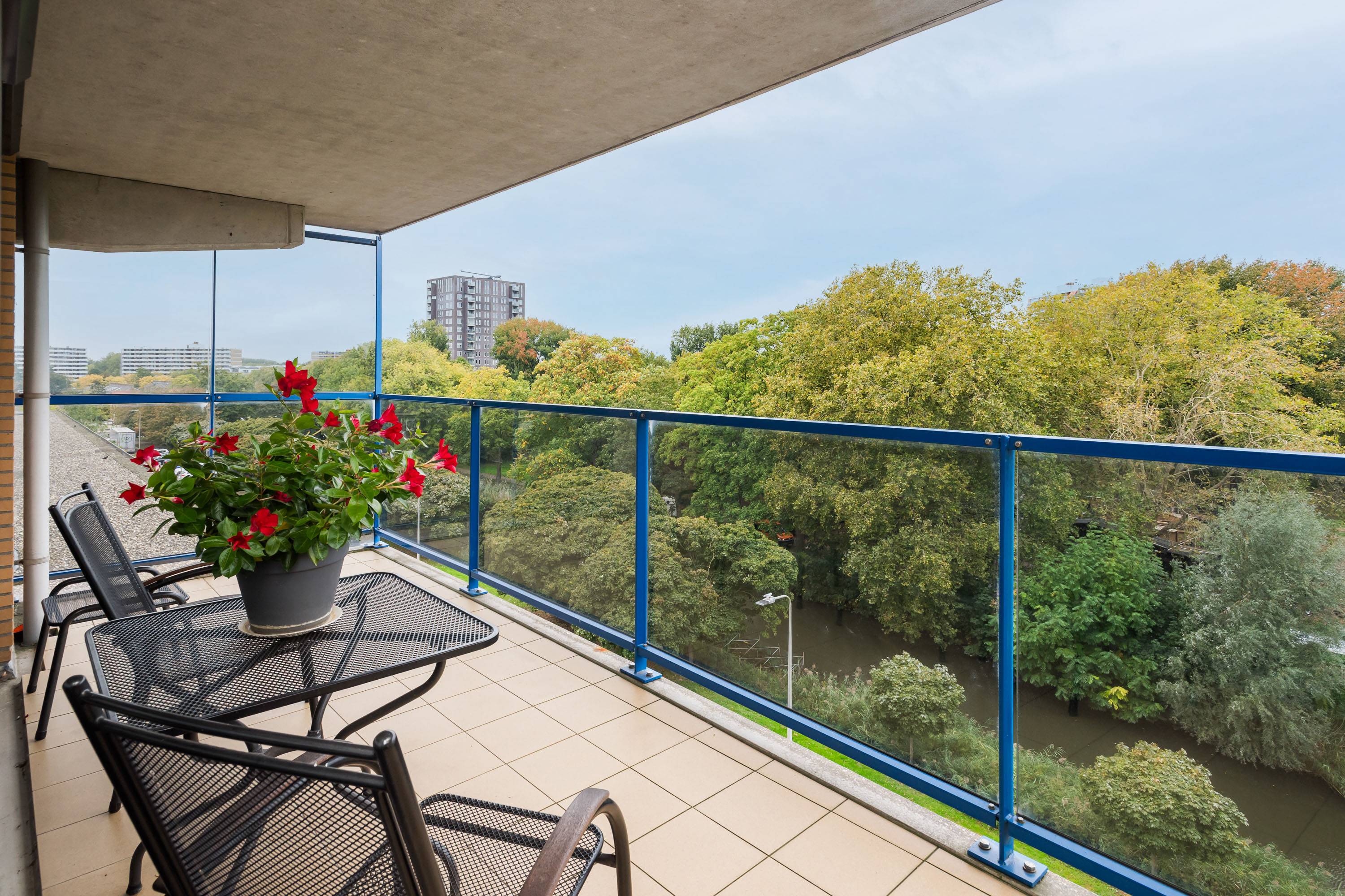 Ruim 4-kamer HOEK-appartement met een royaal balkon, een 2e balkon en VRIJ UITZICHT op een park!