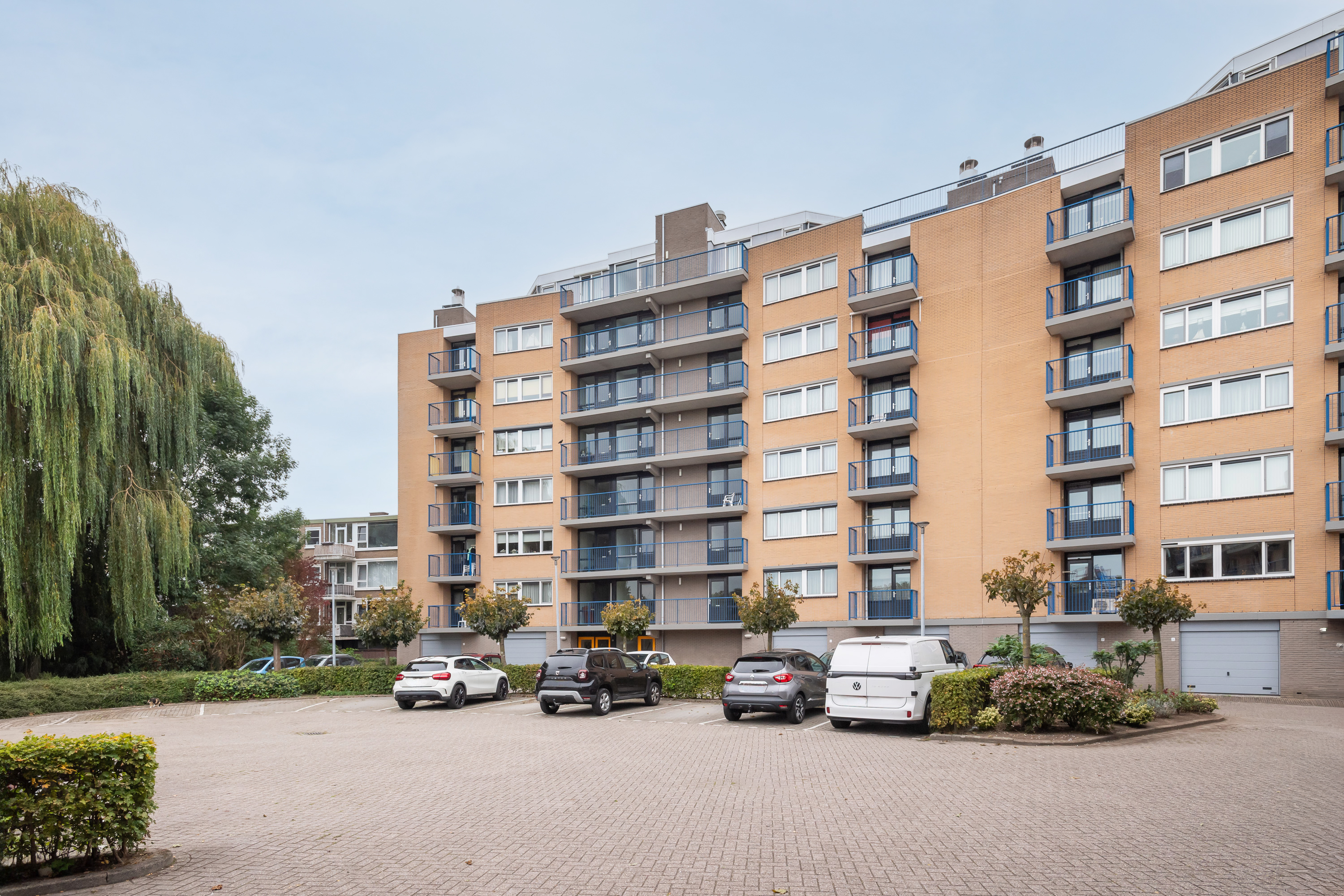 Dit fijne en ruime appartement met vrij uitzicht ligt op een heerlijke rustige plek om de hoek van het grote winkelcentrum. Het complex is voorzien van een liftinstallatie en een eigen parkeerterrein aan de achterzijde waar u naast uw riante inpandige garagebox ook eventueel uw 2e auto kunt parkeren. De vrije hoekligging biedt extra privacy en u kunt genieten tot zonsondergang! Bovendien biedt het tweede balkon aan de achterzijde een ideale plek om de dag te beginnen met de ochtendzon en een heerlijk ontbijt. Het appartement beschikt verder over een ruime en lichte woonkamer met een extra zijraam vanwege de hoekligging, een open keuken, 3 slaap-/werkkamers, een ruime badkamer, Een separaat toilet en een bijkeuken/wasruimte. De CV-combiketel is van 2022. Het bouwjaar van het complex is 1997