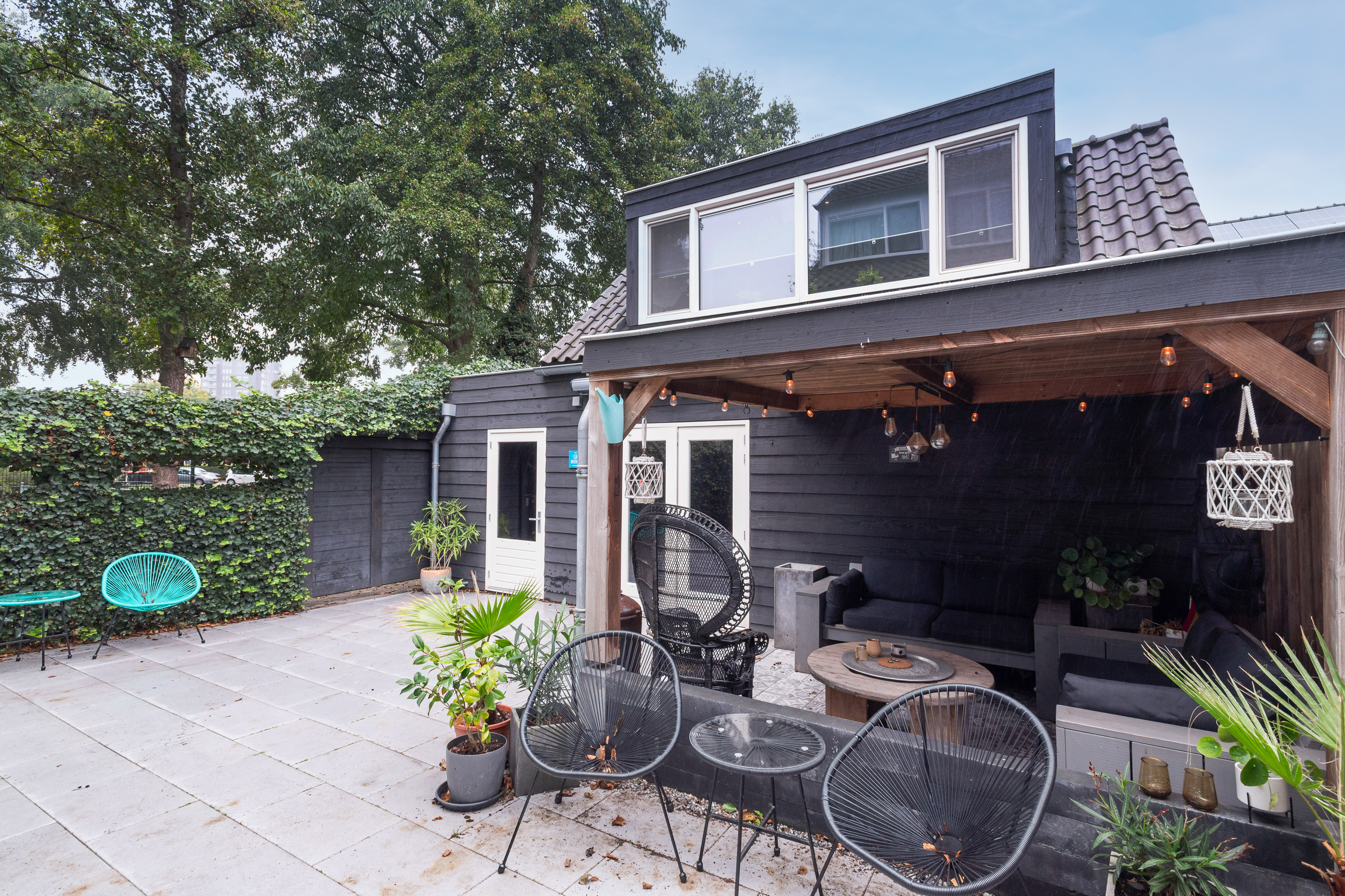 Overkapping aan de zijkant van de woning.