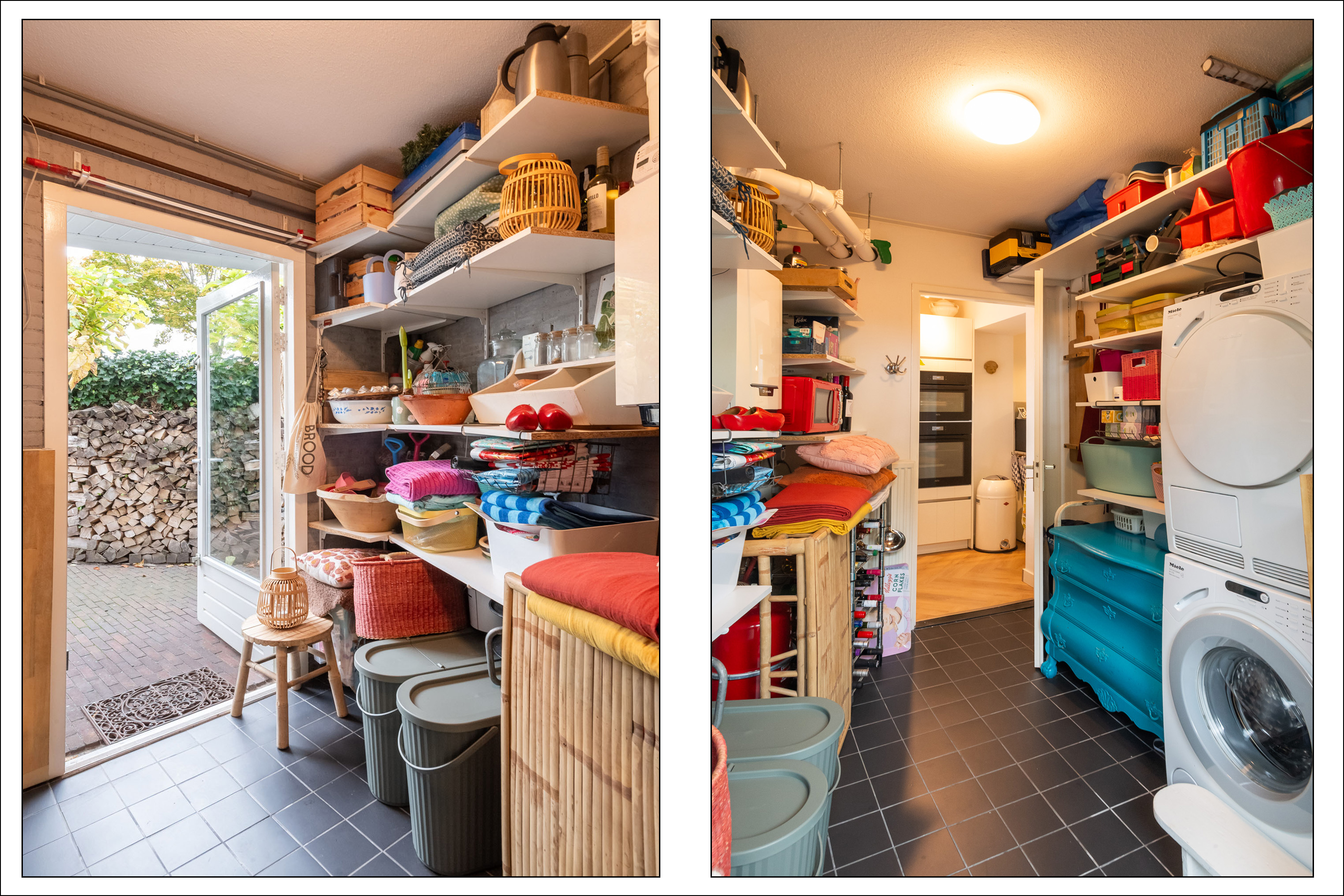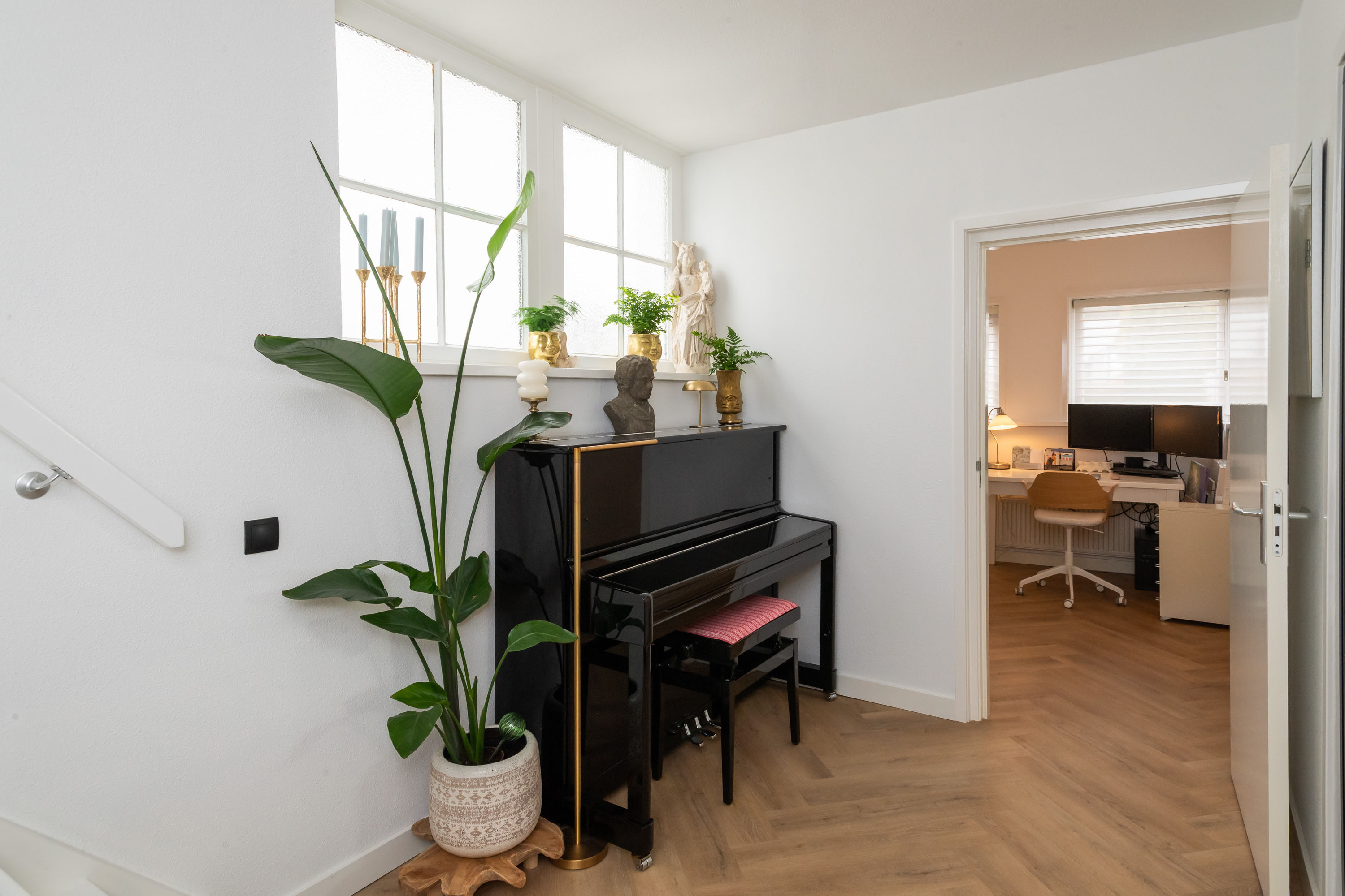 Hal met garderobe en lichtinval via een zijraam en moderne meterkast met glasvezel, PVC-visgraatvloer met vloerverwarming en toegang tot een toiletruimte met fonteintje. Via een fraaie, industriële pui met glas/aluminium en -deur bereikt u de gezellige woonkamer. Deze ruimte is voorzien van een PVC-visgraatvloer met vloerverwarming, een sfeervolle open haard, een prettige lichtinval via grote ramen en deur naar de tuin. De luxe open keuken is voorzien van een hoekopstelling (2022) met een fraai composiet aanrechtblad en inbouwapparatuur waaronder een luxe 3-in-1 Quooker (combi-flex met cube), XXL vaatwasser met comfortlift, een Bora inductiekookplaat met geïntegreerde afzuiging, grote oven en stoomoven. Doorloop vanuit de keuken naar een bijkeuken/inpandige berging en wasruimte en deur naar de tuin. De beschutte tuin is voorzien van een poort en omheind met een haag, schanskorf-panelen en biedt veel zon en privacy! Vanuit de woonkamer is er een glazen/aluminium schuifdeur naar een tussenhal met een raam en toegang tot een werk-/hobbykamer. Doorlopende pvc-vloer met vloerverwarming. Vaste trap naar de 1e verdieping.