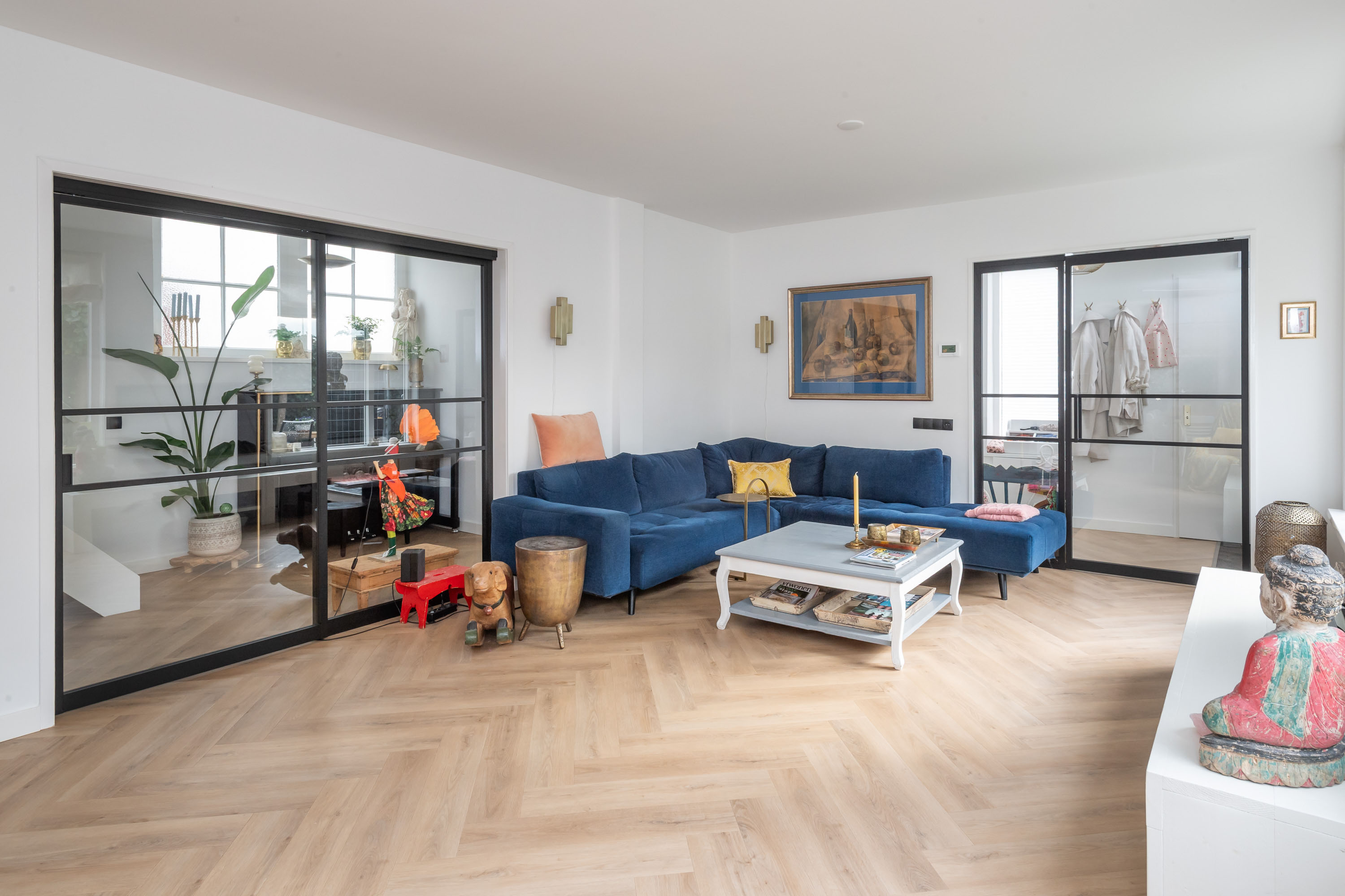 De begane grond-vloer is van beton en voorzien van vloerverwarming met een PVC-visgraatvloer.