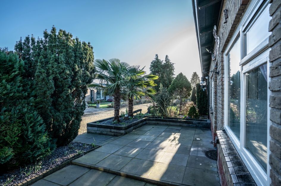 Entree met meterkast en plafond met inbouwspots, hal met toegang tot de tuingerichte U-vorm living met laminaat-vloer, grote raampartijen en een schuifpui naar de tuin. De sfeervolle open keuken in lichte kleurstelling is voorzien van een granieten aanrechtblad met plint-/spatwand en diverse inbouwapparatuur waaronder een inductie kookplaat met RVS-afzuigkap, vaatwasser en koelkast. Vanuit de keuken bereikt u via een schuifpui de ruime (aangebouwde) ouderslaapkamer 1 met een vaste wastafel, lichtkoepel, laminaat-vloer en toegang tot een walk in closet met raam en zicht op de tuin. De heerlijke vrij gelegen tuin met diverse terrassen met zitjes is omheind met houten schuttingen, hagen en heeft een ruime schuur met aangrenzende veranda.
