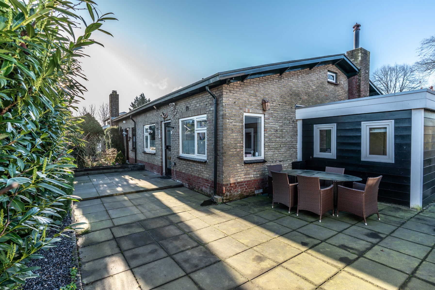 Veranda en ruime schuur met fietsenafdak